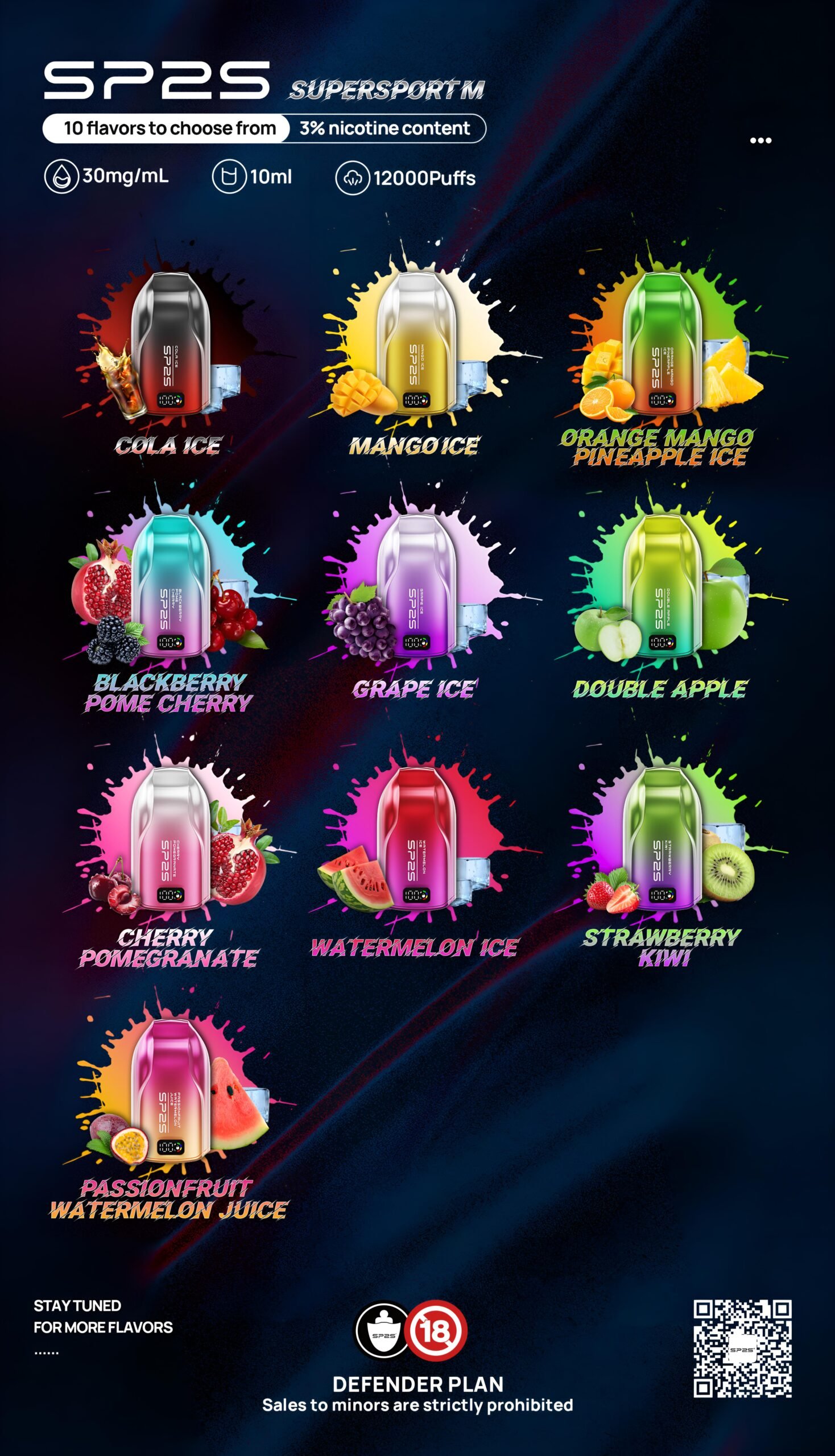 SP2S一次性電子煙12000口|可充電大容量|多口味選擇含澳版限定